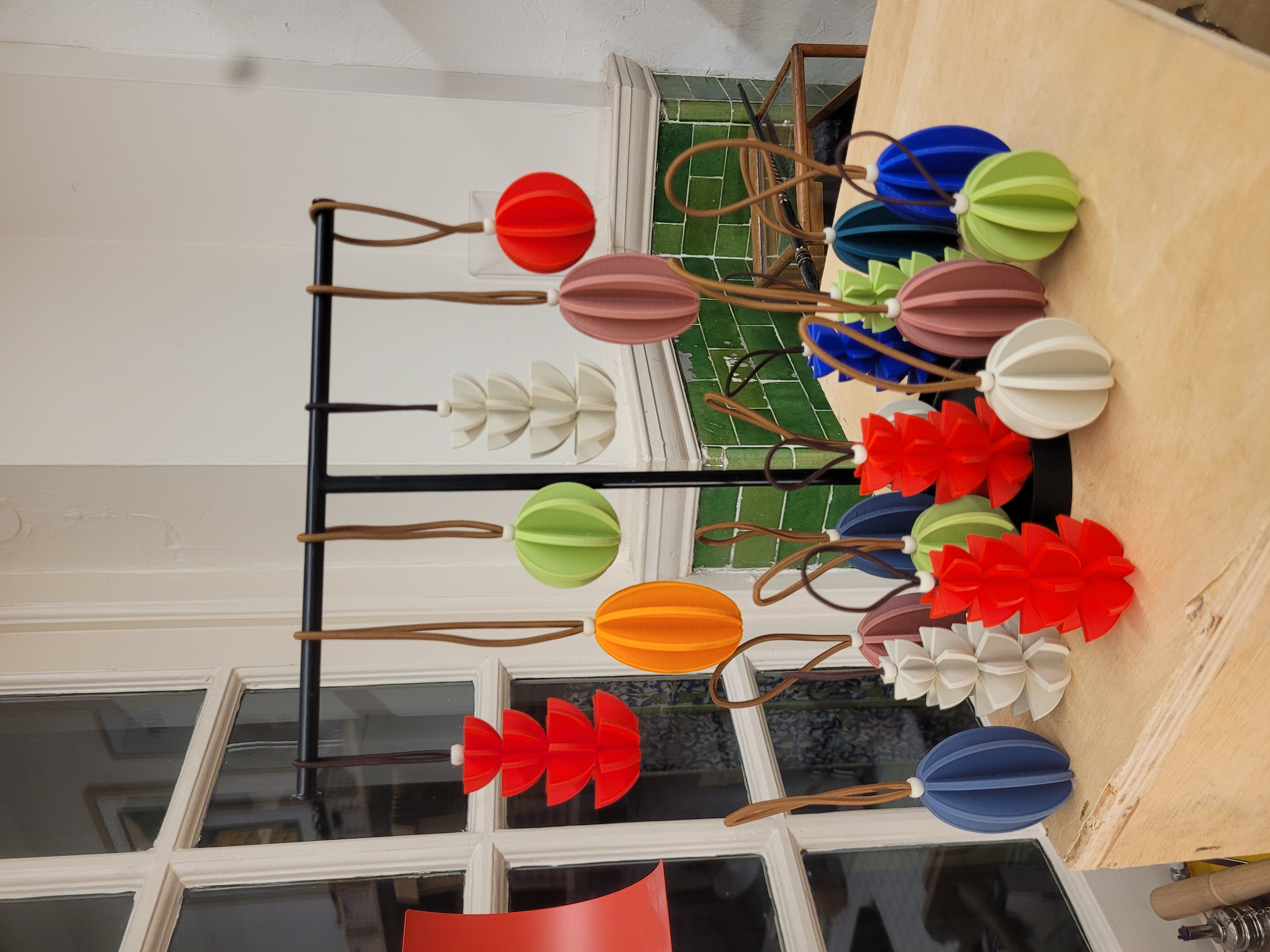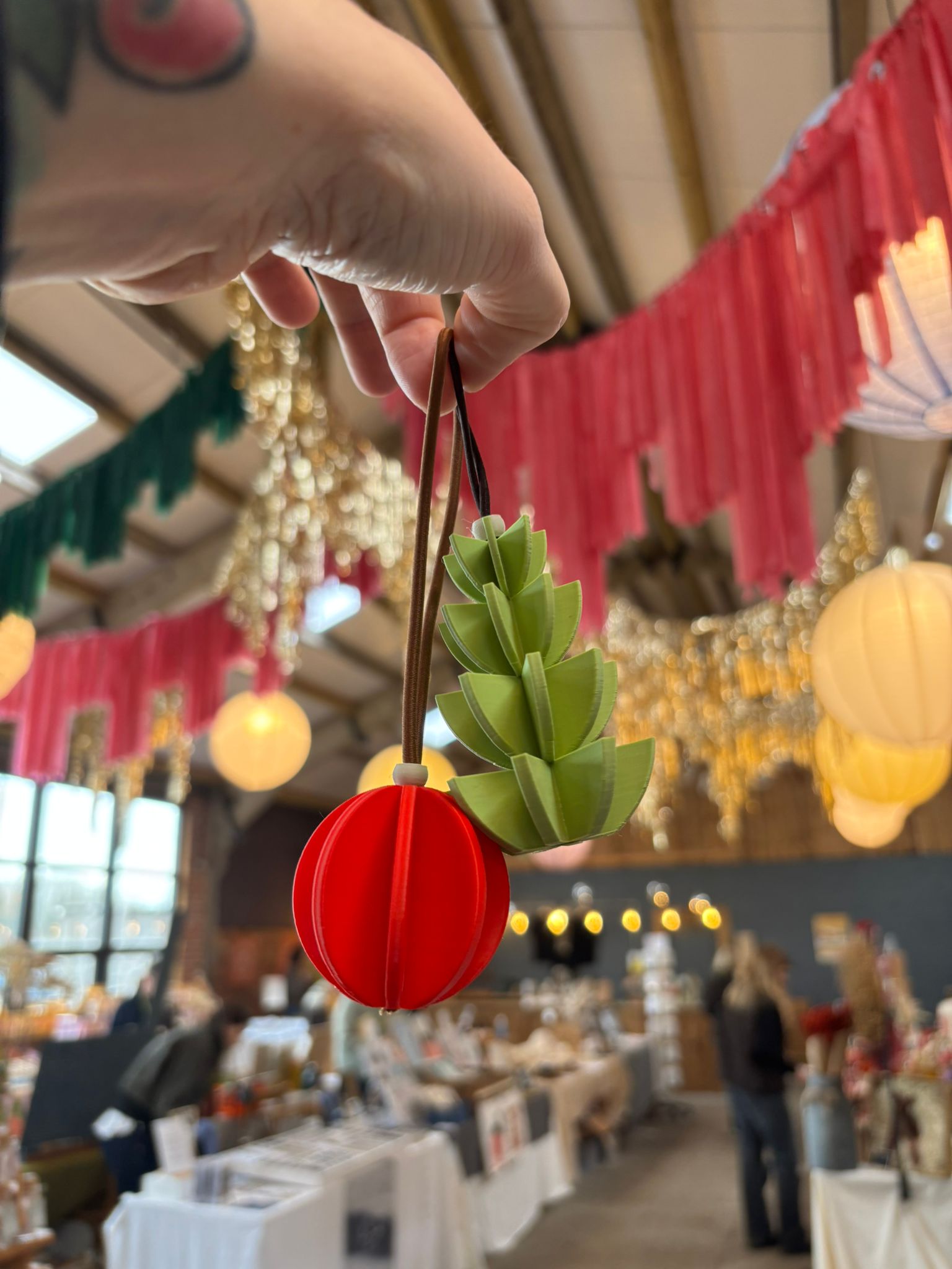 A selection of seasonal decorations, 3D Printed in sustainable, plant based PLA. See available colour options here and add a note at checkout with your chosen colour. All decorations are on brown elasticated cord with a cream bead detail